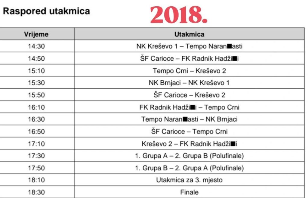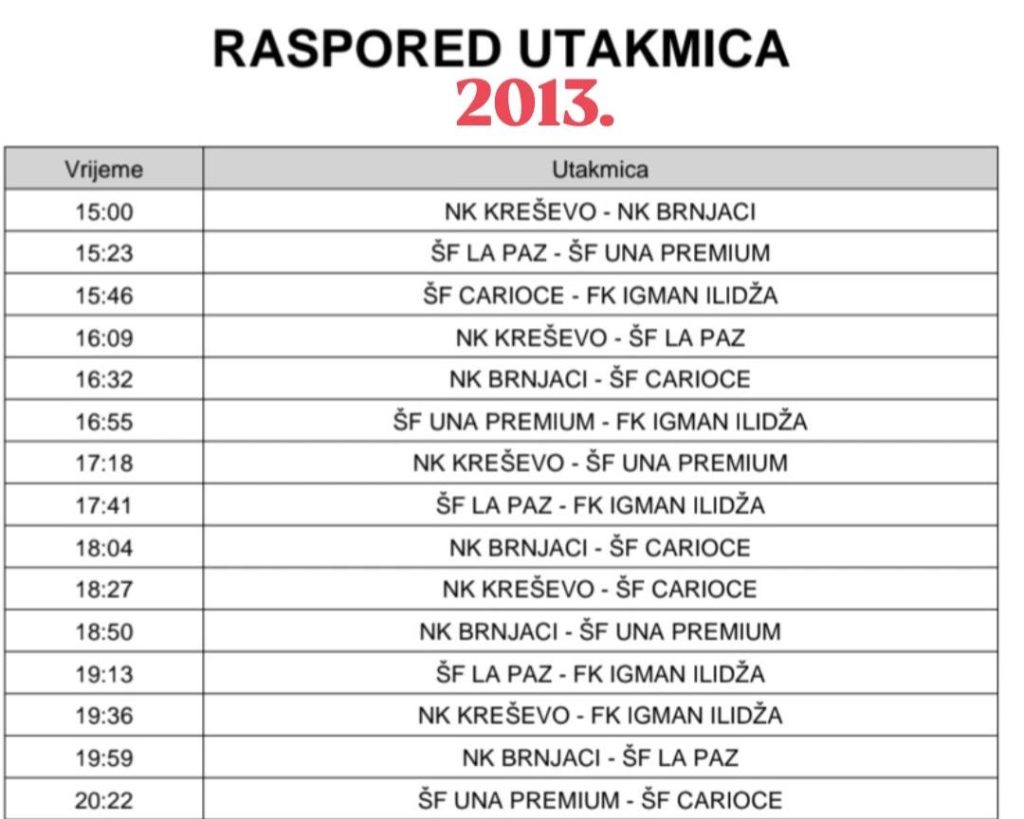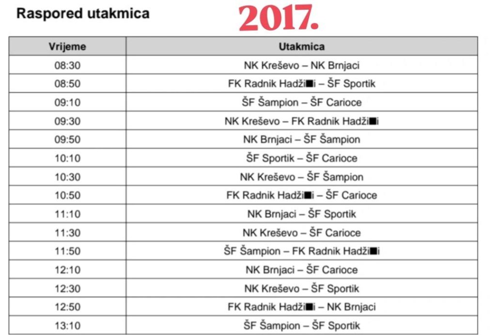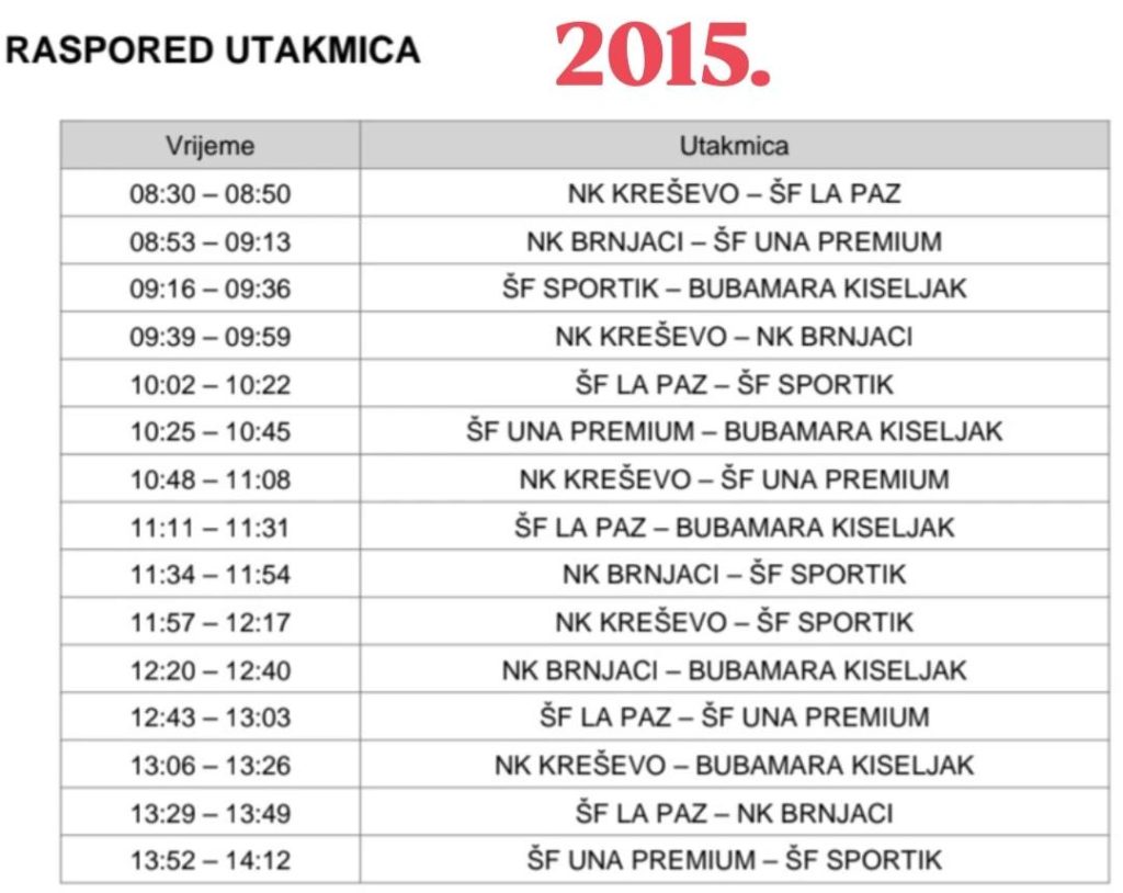 Sve utakmice odigrat će se u gradskoj srednjoškolskoj dvorani u Kreševu, a raspored za svaku generaciju dostupan je na fotografijama.